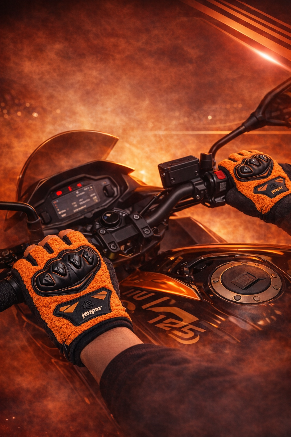 JK Peluşlu Yarım Eldiven, konfor, sıcaklık ve dikkat çekici tasarımı bir arada sunmak üzere özel olarak üretilmiştir. Canlı turuncu rengi, motosiklet üzerinde enerjik ve dinamik bir görünüm kazandırırken aynı zamanda fark edilirliği artırır. Hem günlük kullanım hem de şehir içi sürüşler için ideal bir üründür.