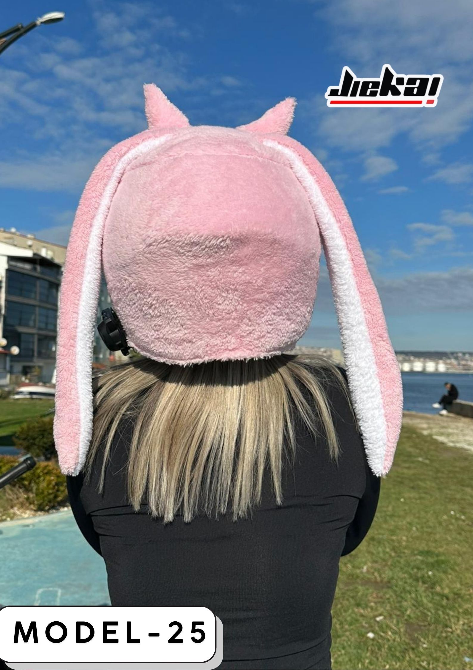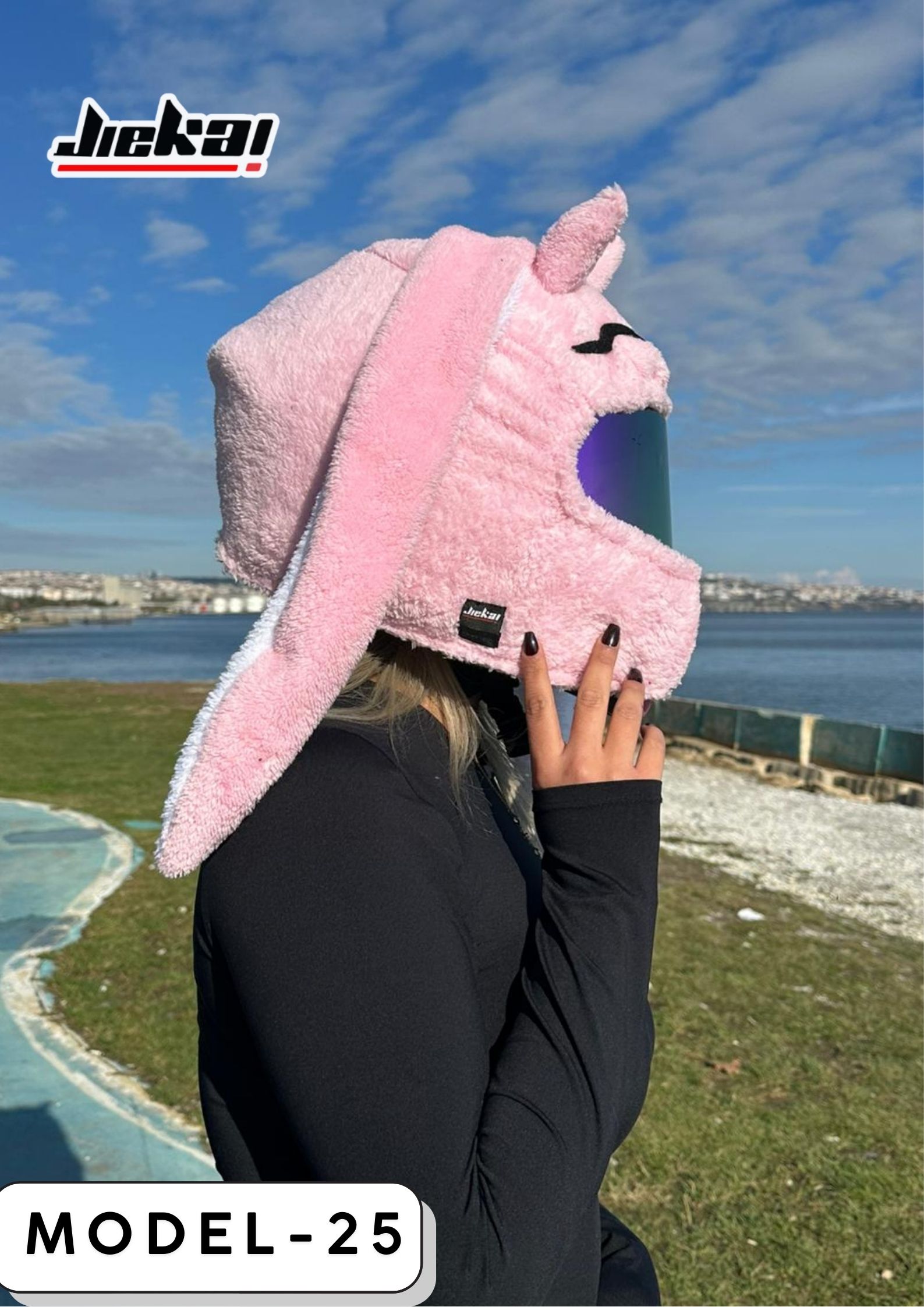 JİEKAİ Pink Girl Kask Peluşu – Uzun Kulaklı, Pembeli Beyazlı Yeni Tasarım!