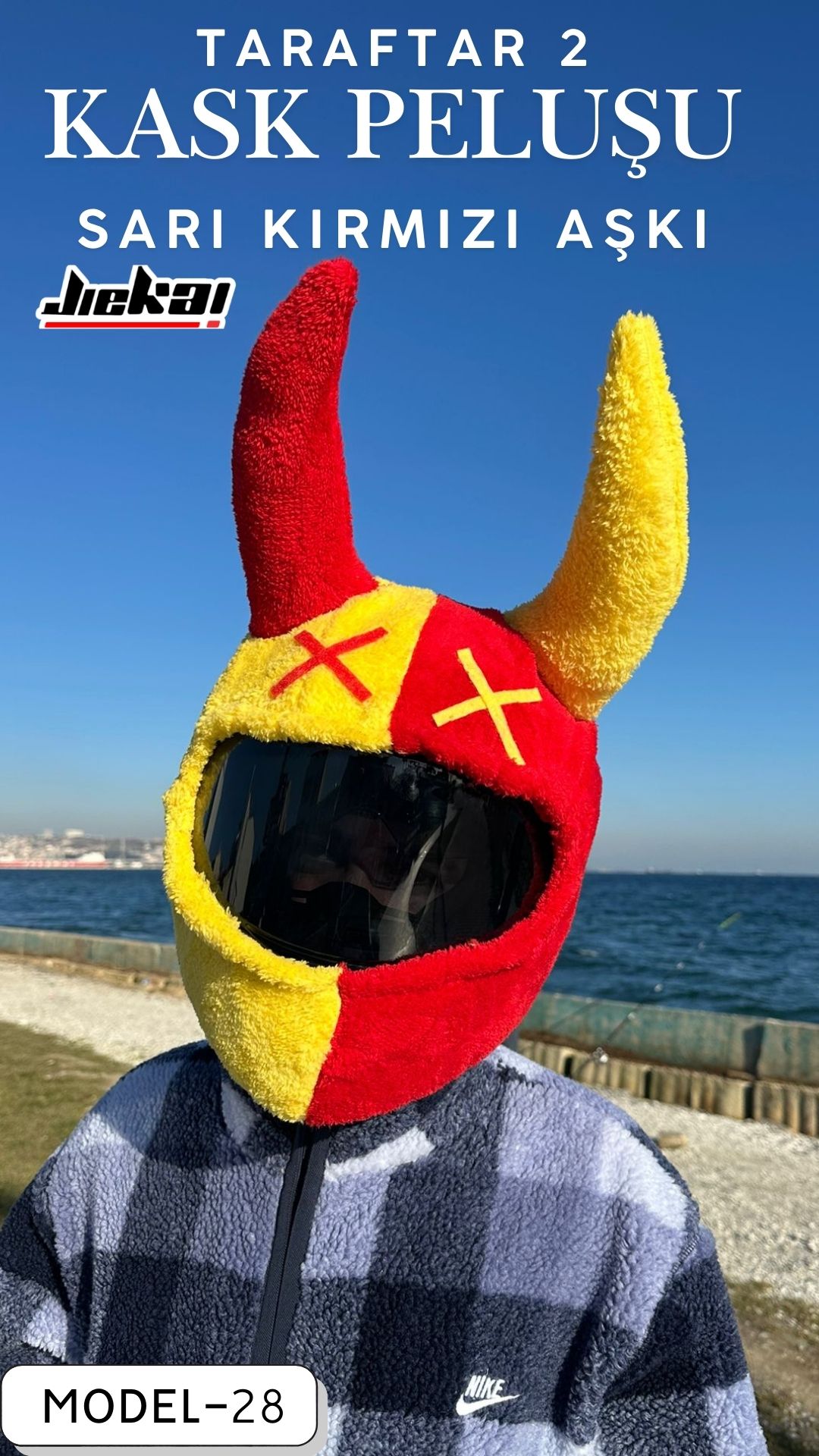 Taraftar-2 Sarı Kırmızı Kask Peluşu, JİEKAİ kalitesiyle üretilmiş, motosiklet aksesuarlarında fark yaratmak isteyen kullanıcılar için ideal bir üründür.